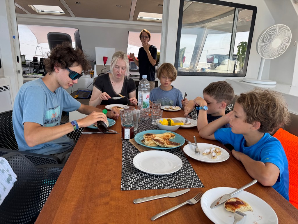The next day unfolded much the same: a mix of sailing and motoring. The night that followed brought no spectacular starry skies, thanks to the moonlight and damp, muggy air. Still, we made the most of it with home-baked Zimtschnecken and a first attempt at using Starlink.