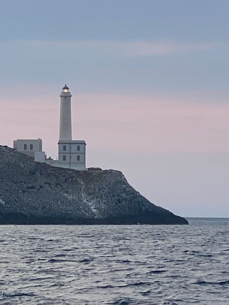 Finally, just before midnight, we dropped anchor at Santa Maria di Leuca. The town welcomed us with its unmistakable Italian holiday vibe: loud music, the scent of fritto misto, a haze of cheap cologne—yet also wonderfully still water and the glow of a beautiful lighthouse.