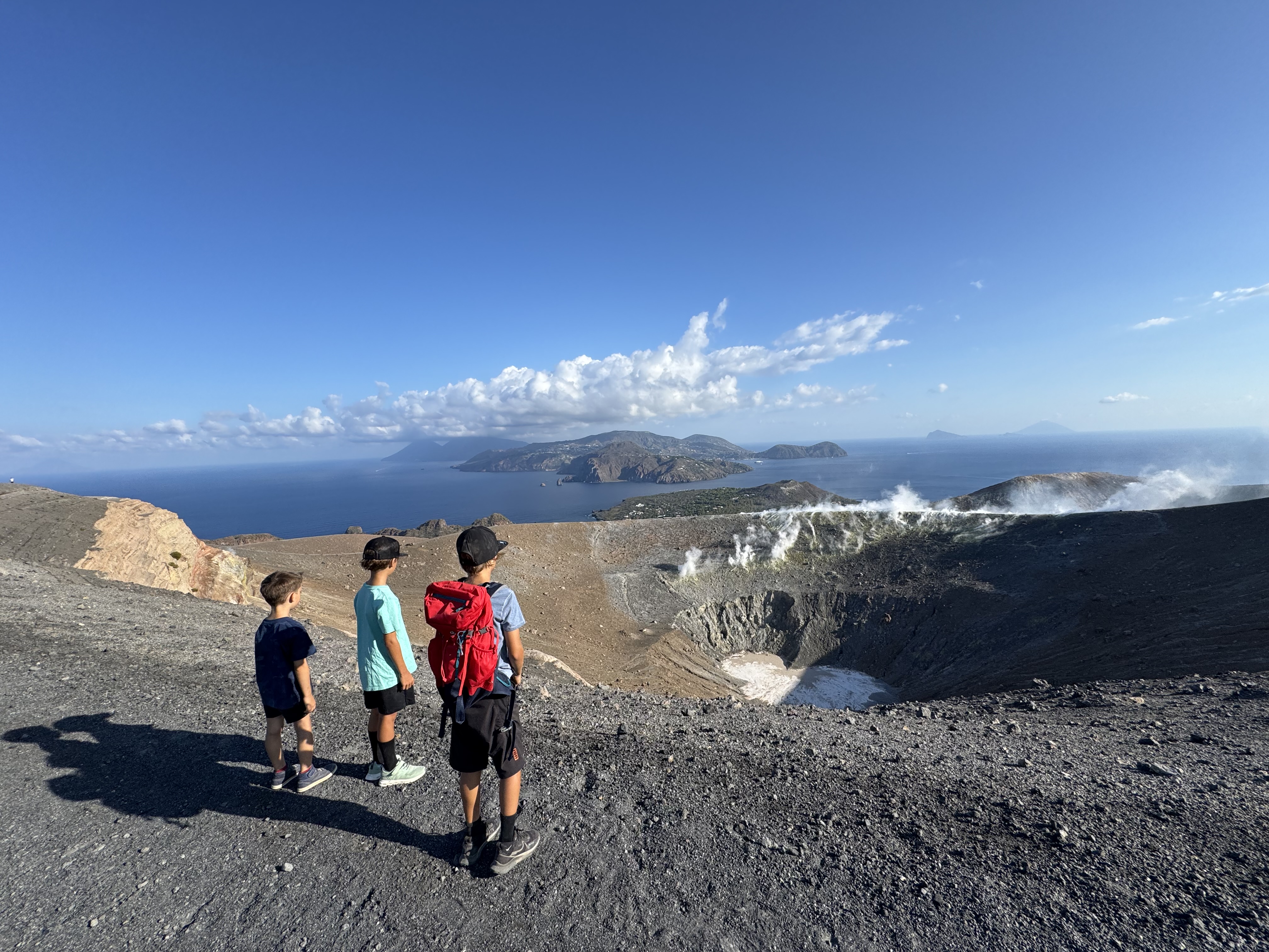 Reaching the top was an unforgettable experience — standing at the edge of the crater, watching wisps of smoke rise from vents that lead directly to the inner of our planet. What an awe-inspiring reminder of the earth’s power! The boys, of course, were most excited by something else entirely: gleefully tossing rocks into the crater and watching them disappear into the depths.