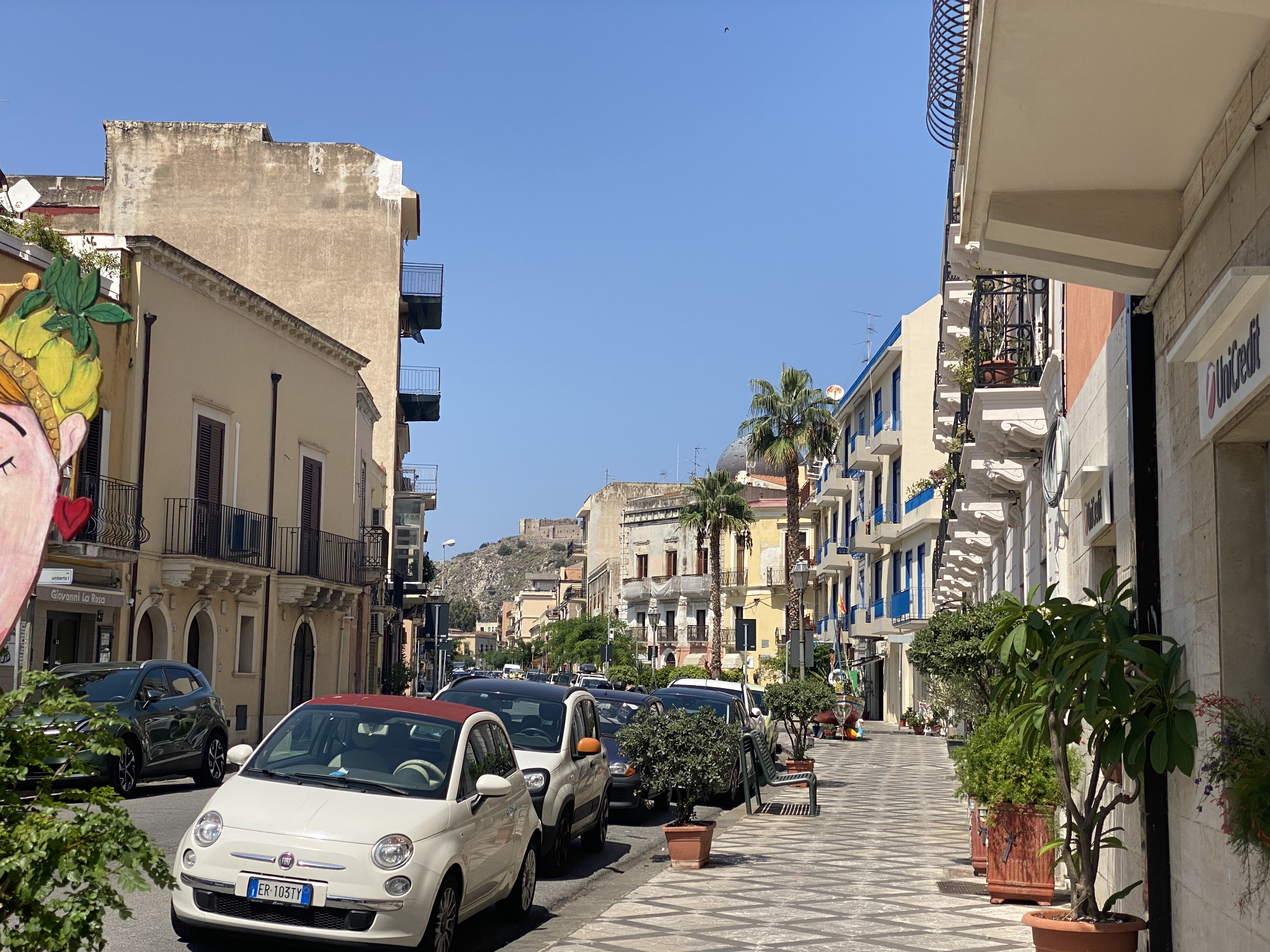 Milazzo surprised me with a quiet charm — maybe because I have a soft spot for crumbling Italian palazzi, orange trees lining the streets, and an old castle offering sweeping views. Up until then, we had been covering miles so quickly that there was hardly time to register where we were before setting off again. Sitting in a Sicilian bar, sipping a caffè freddo and eating a brioche, I suddenly thought: Wow — we’re in Sicily!