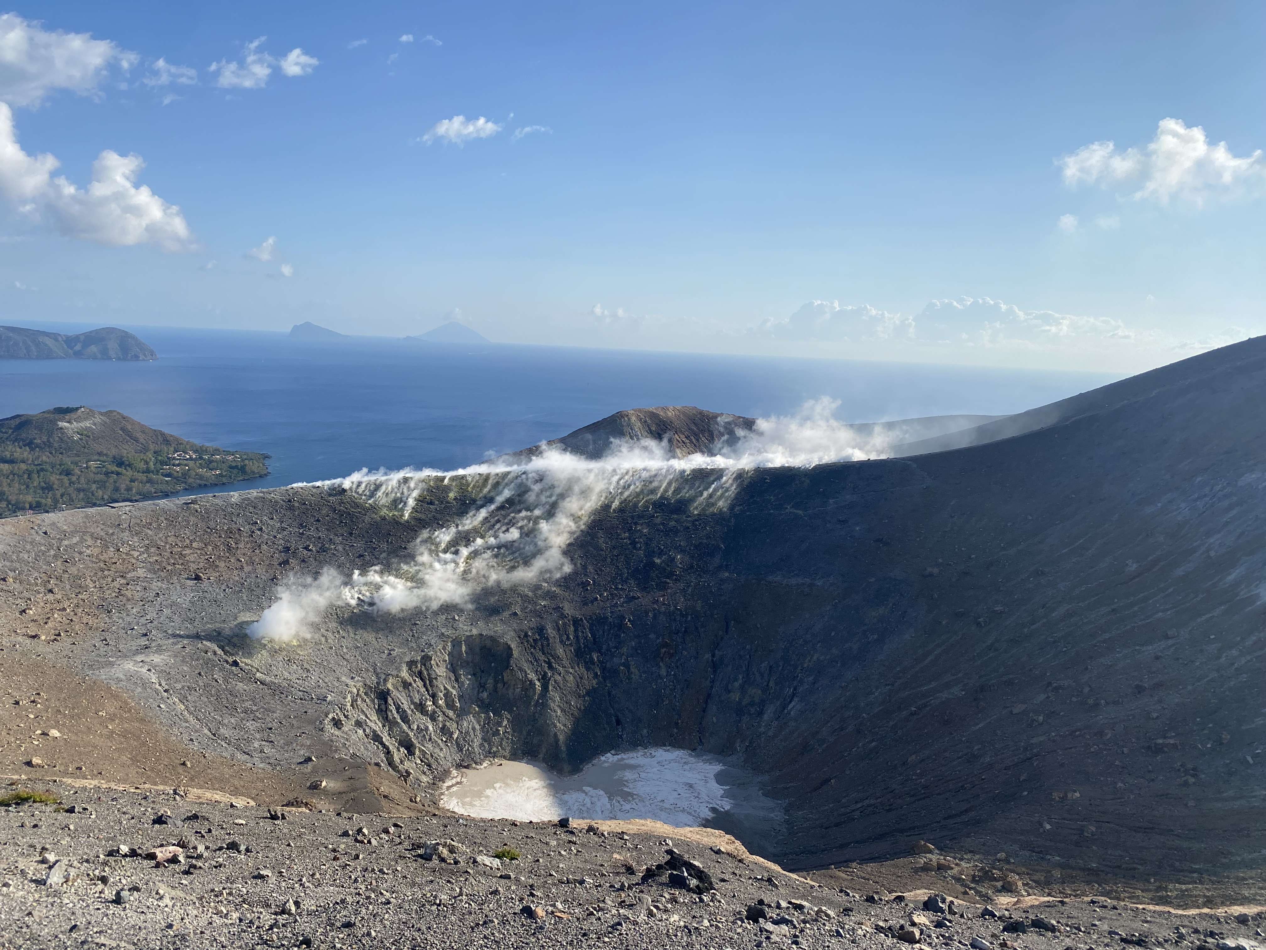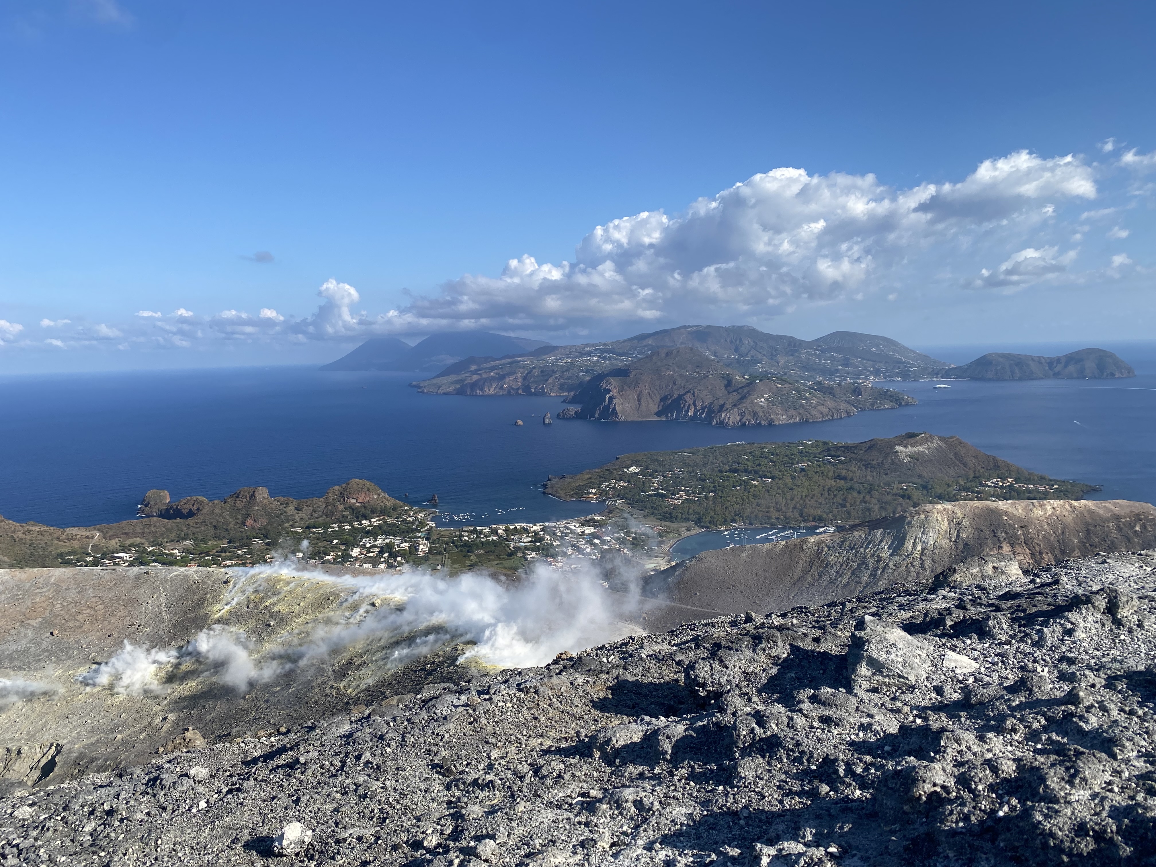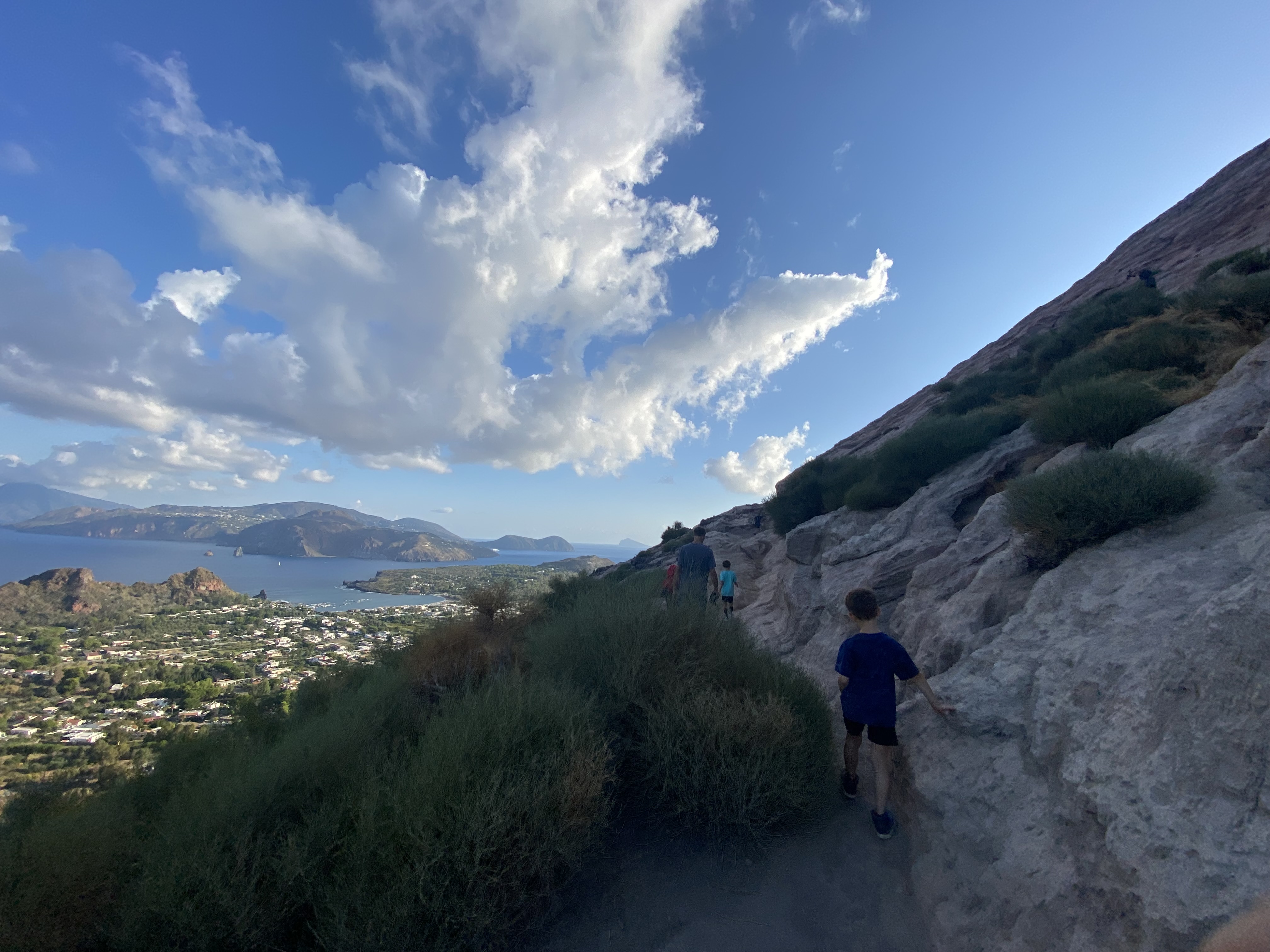 The next morning, we made the short hop across to Vulcano, where we spent the afternoon lazing on the beach in the shadow of its beautiful — if slightly smelly — mountain. Another day of laziness was exactly what the crew needed before being subjected to their “horrible mother’s” plan: a 6 a.m. wake-up call to climb Vulcano. It was tough to get out of bed, but oh, was it worth it!