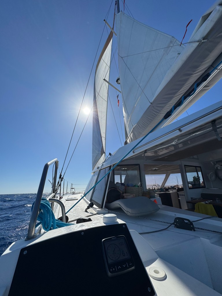 We left with headwinds and quite a sea state, trusting the forecast that promised things would ease off… well, not quite. The upside? We now know we can rely on Akuna to be a safe and speedy companion even in far-from-ideal conditions.