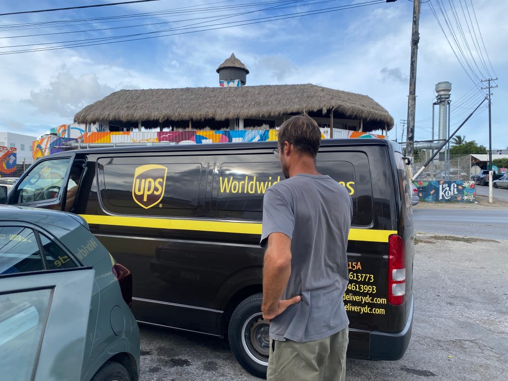 Our miracle came in the form of a highly motivated and wonderfully helpful lady in charge of UPS parcels in Curaçao. All by herself, she managed to make what felt impossible happen. She processed the Customs within minutes after she started work on Monday so it could be released by the officials on the same day. While our parcel was still traveling from the airport to her office, Mark texted her asking if there was any chance we could pick it up before 5:00 pm. She asked where we were, told us not to move — and ten minutes later, Mark was holding it. Just like that.