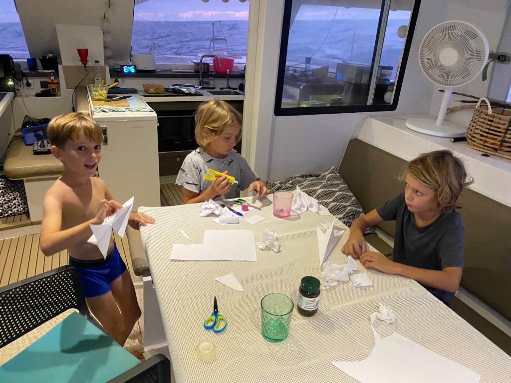 Last night felt like a bit of a halfway celebration. We marked the moment with Top Gun: Maverick for the boys and a proper feast: steak, potato gratin, and cucumber salad, followed by chocolate mousse with passion fruit and/or strawberry topping. Honestly, having a freezer on board feels like pure decadence.