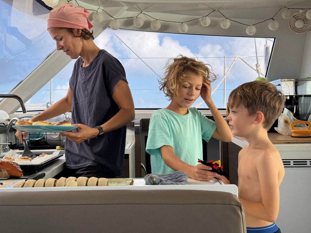 Provisions, however, are starting to thin out. Vegetables are becoming scarce, and fruit supplies are running low. We still have some frozen bananas from the 83 in total, all of which seemed to ripen at once—along with a few frozen berries and the last of a watermelon. Beyond that, options are limited and come in cans.