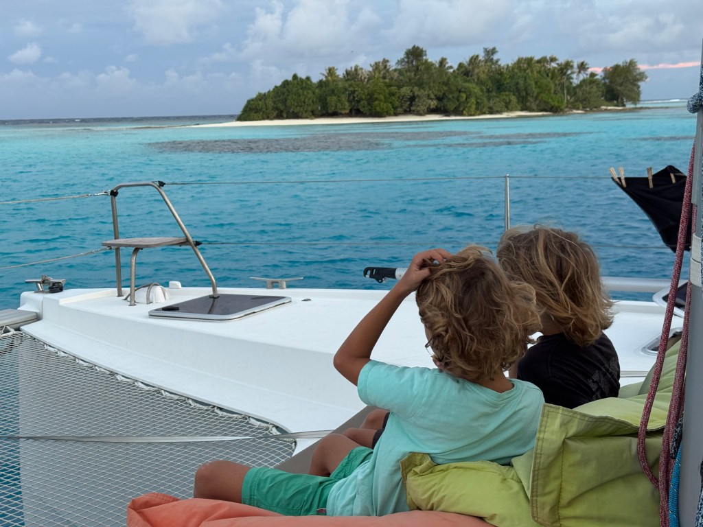 This morning we lifted anchor toward the Tuamotus. The plan: Tahanea, five days away. The reality: possibly Hao, three days away, because Uki’s leg decided to react dramatically to an insect bite.