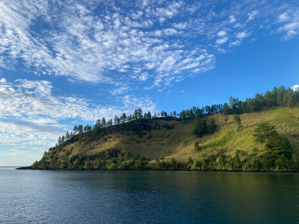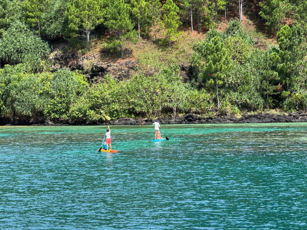 We spent two weeks snorkeling in what felt like a giant aquarium—colorful coral, loads of fish, and even a few small sharks to keep things interesting. We also hiked along the ridges of Mangareva, which was equal parts stunning and mildly terrifying. Picture narrow paths, steep drop-offs on both sides, and a helpful layer of slippery pine needles just to keep your survival instinct sharp.