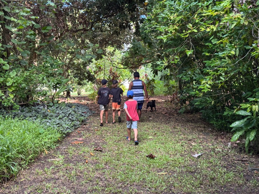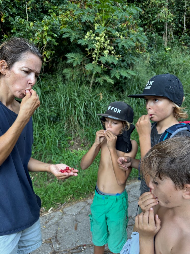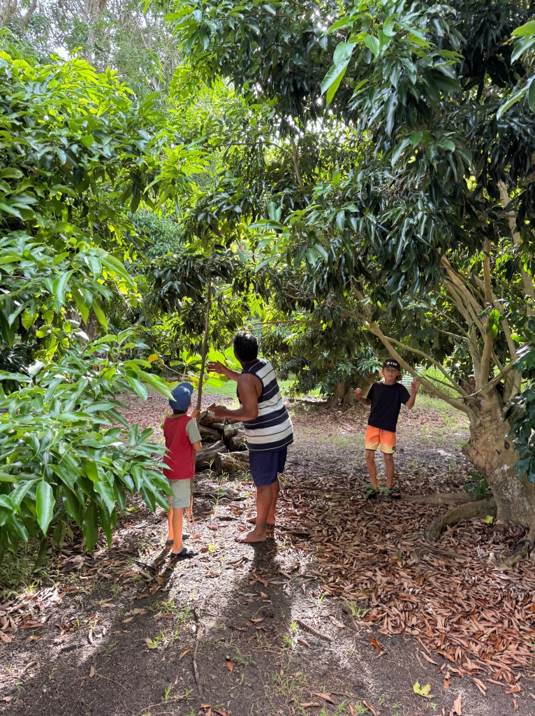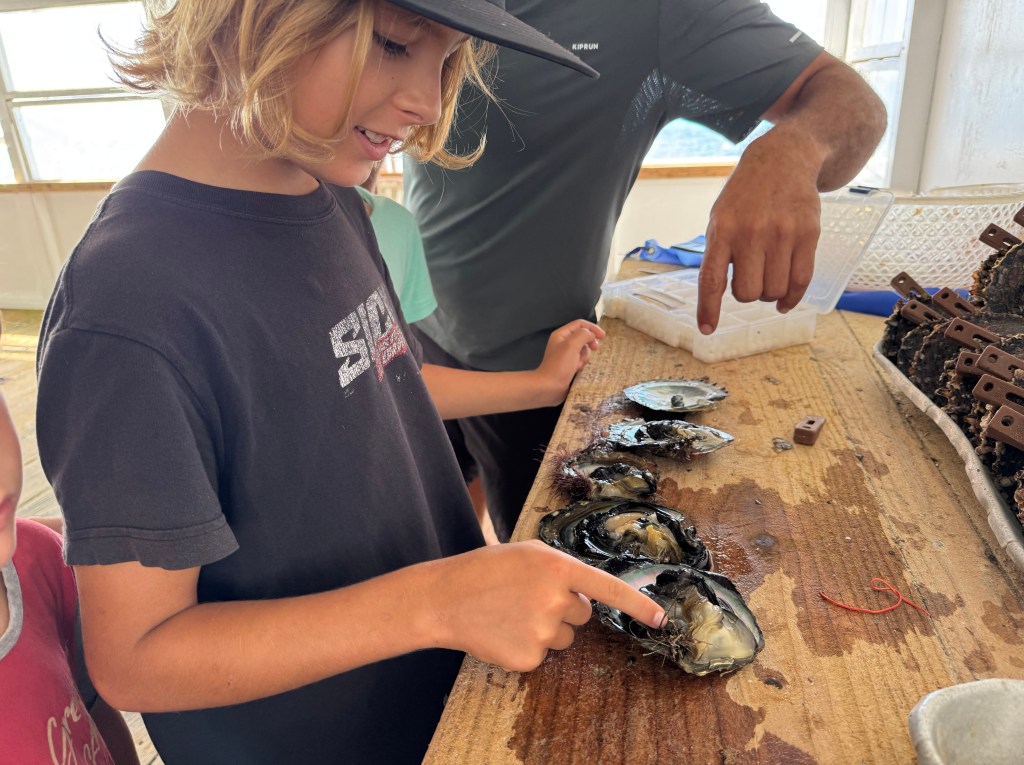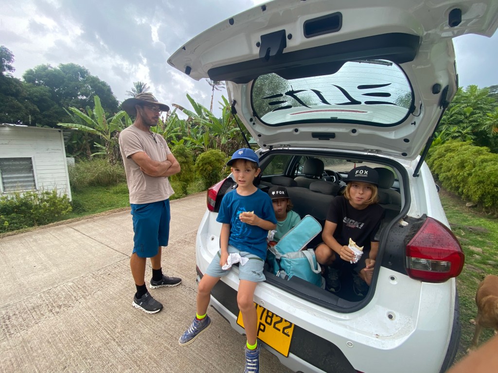 We also visited a black pearl farm—because apparently Mangareva produces some of the best pearls in the South Pacific. Naturally, we now own some (seemed like the logical next step) – and also the boys were allowed to harvest their own from a shell. Seeing how they’re made was honestly mind-blowing. First, the oysters are raised and selected, then after about three years they get their first graft. After that, it’s basically a full-time spa and maintenance program: every two to three months they’re cleaned by hand and even blasted with a pressure washer. All that effort… for something tiny, shiny, and dangerously easy to justify buying.