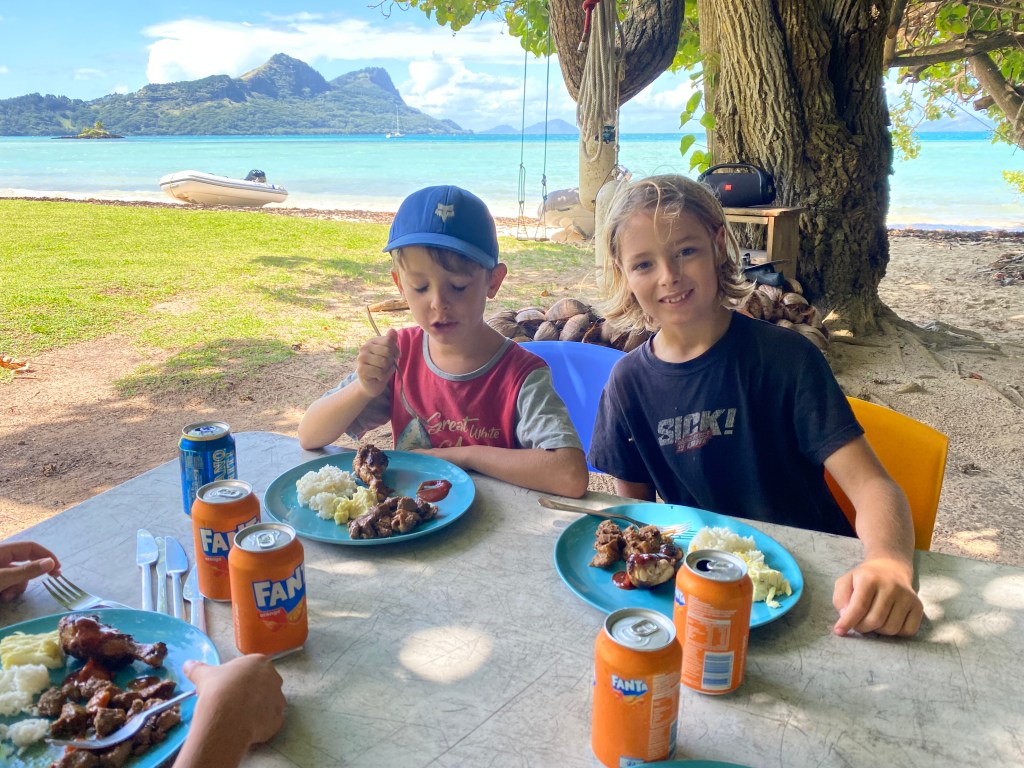Social life peaked at a BBQ at Valerie’s and Hervé’s on Taravai—a true hotspot (population: 8). Every Sunday, they host a cook-up for sailors, partly for income, but mostly, it seems, because when eight people share an island, you don’t skip social events.