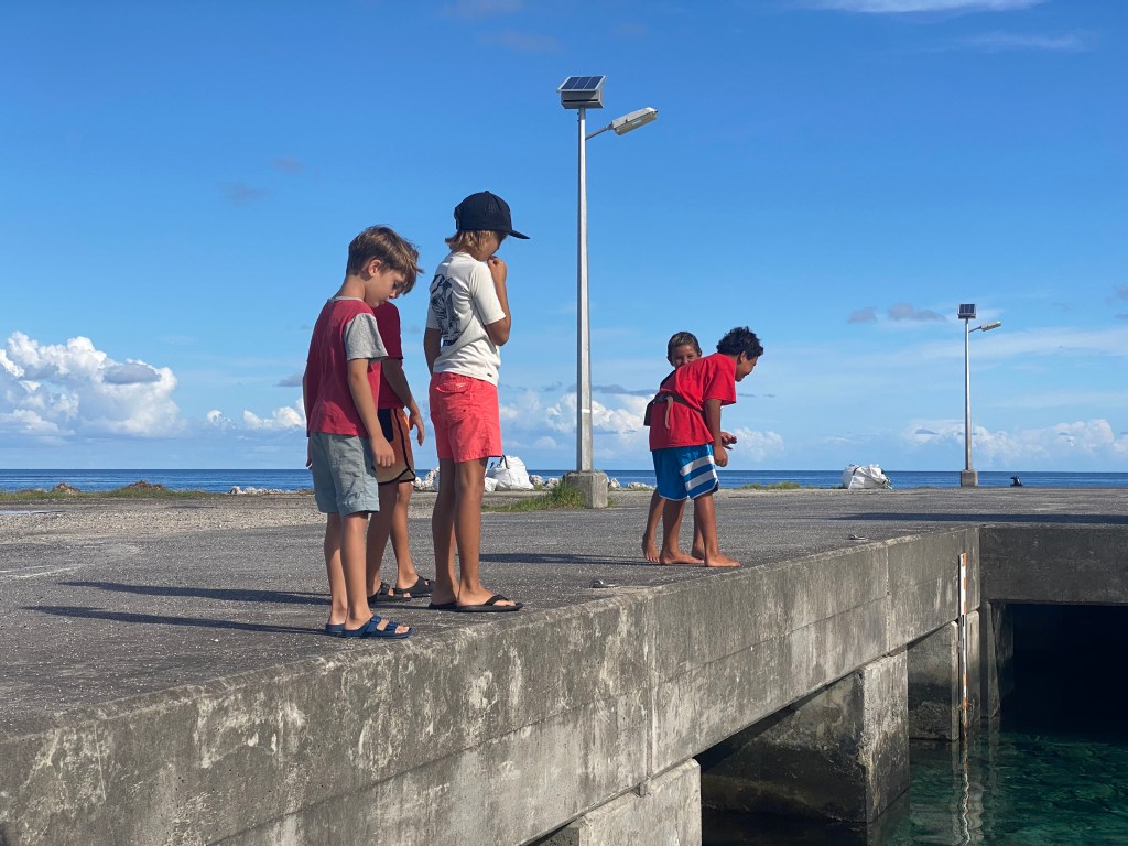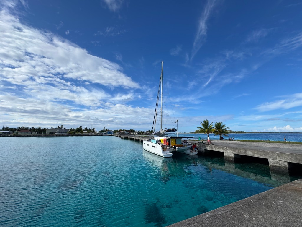 Later, we did the „right thing“: a visit to the mairie (town hall) to check in and pay the local rubbish fee—120 XPF (about €1) for all of us and the boat, which feels like a bargain for what is essentially a private marina berth. We also stopped by the local gendarmerie. While not strictly required, the officer in the Gambiers had told us it’s simply polite and „the right thing“ to do. Mark had a friendly chat, they logged our details, and it was clear they appreciated the gesture.
