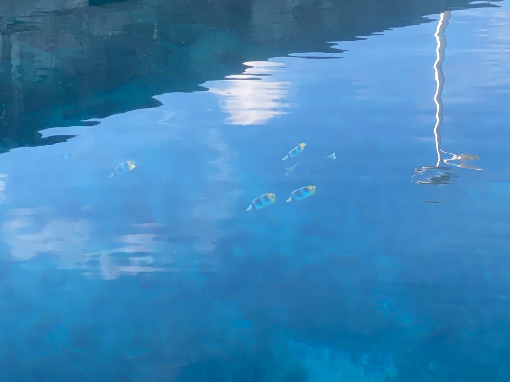 At 8:00am, I jumped into the clearest water we’ve seen on the entire trip so far. Within seconds, I was surrounded by an abundance of fish—more than I’d even seen diving in the Galápagos—and this was just off the town dock.