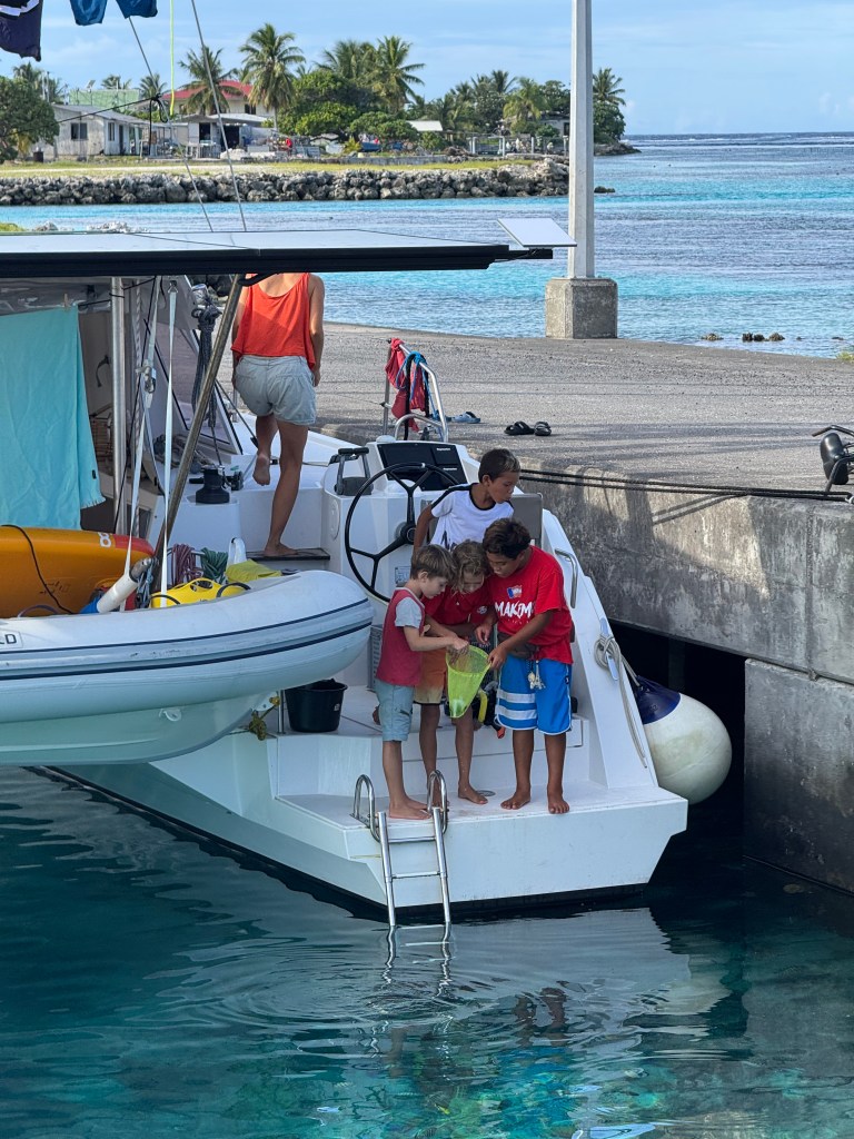 We were soon greeted by fellow sailors from Blu and Bonnie Doon, and after a relaxed lunch together, it wasn’t long before the local kids climbed aboard after school and the lollie-stock was raided.